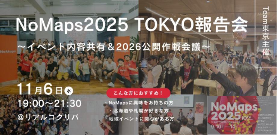 今回のイベントでは、NoMaps2025の開催報告を共有するとともに、2026年のNoMapsを東京から仕掛けていくための「公開作戦会議」を実施します。
