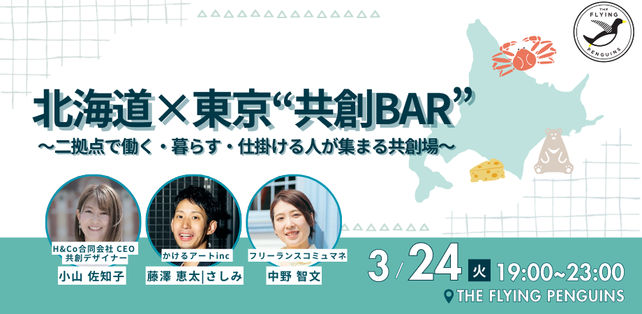 北海道と東京を行き来し、新しいコトを仕掛ける人が集まる共創の夜です!