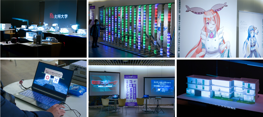 | 参加学校 団体 | 北海道科学大学 荒澤ゼミナール / 北海道科学大学 未来デザイン学部 メディアデザイン学科 / 北海道科学大学特別団体:高大連携団体「みらいリンク」 北翔大学 インテリア建築&メディアチーム学生作品 北海道情報大学 情報メディア学部 安田研究室 北海道ハイテクノロジー専門学校 ITメディア学科 VRアートを楽しむ会 |